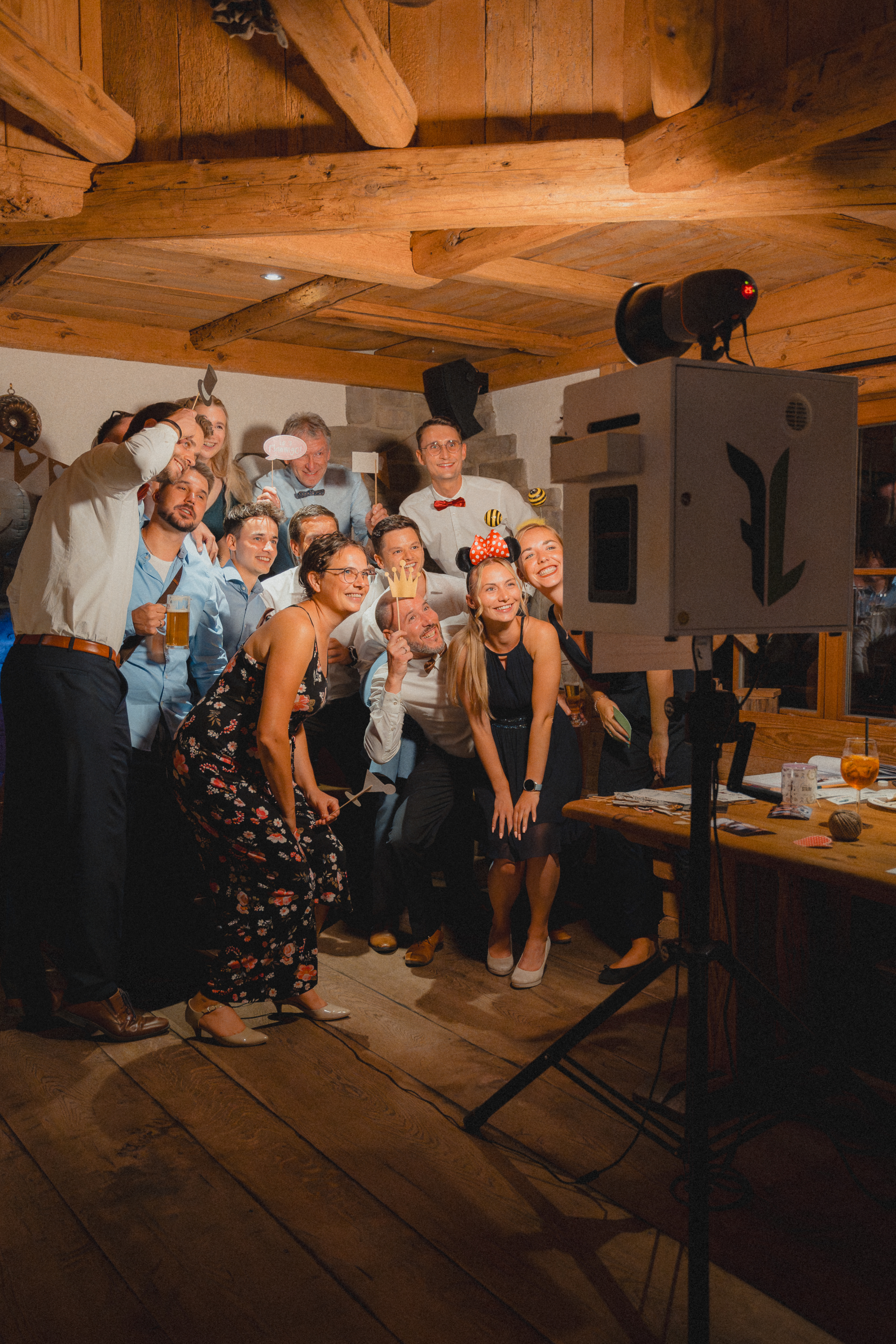 Wir bieten euch auf Wunsch die Fotobox mit lustigen Requisiten. Die sorgen später auf den Bildern für das gewisse Extra.